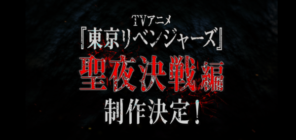 2021.12.18 NEWS TVアニメ『東京リベンジャーズ』“聖夜決戦編”制作決定! 12月18日(土)にTVアニメ『東京リベンジャーズ』須辺謝留威弁斗~東京卍會立川通凛愚~(スペシャルイベント~たちかわつーりんぐ~)にて、 “聖夜決戦編”の制作が決定することが発表されました! “血のハロウィン編“までの印象的なシーンがピックアップされたPVとともに制作決定が発表されたので、ぜひPVもご覧ください! “聖夜決戦編”の続報をお待ちください! ■“聖夜決戦編”制作決定!PVはこちら