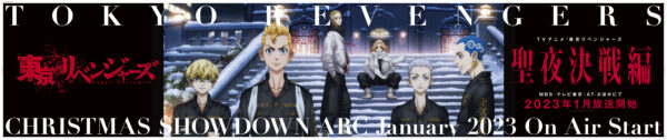 解禁されたばかりの聖夜決戦編キービジュアルと、マイキーに召集された東京卍會メンバーが渋谷に集結したビジュアルが大きく展開されています。ぜひ渋谷に足を運んでチェックしてください!