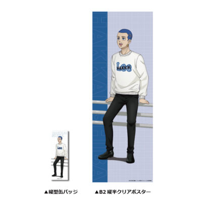 サイズ:縦型缶バッジ/H115×W40mm、B2縦半クリアポスター/H728×W258mm