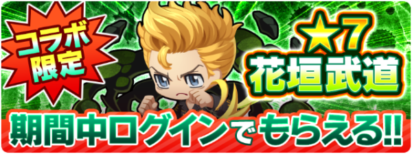 - ●コラボ期間中ログインで「花垣 武道(★7)」がもらえる!