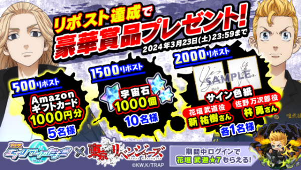 - ●タケミチ役「新祐樹」さん、マイキー役「林勇」さんのサインなどがもらえるリポストキャンペーン開催!